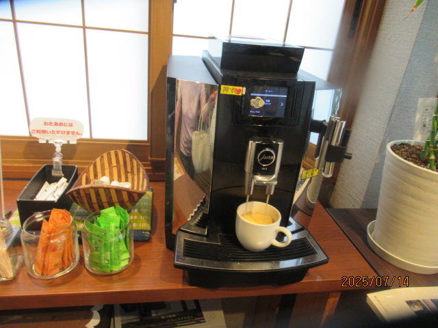 それは、部屋でのお茶出しが、茶葉の入ったカップのみの最小限になっていて、あとはロビーに無料のコーヒーマシンがあり、それを自由に飲め、浴後のサービスに綿菓子や棒のアイスキャンデーが食べ放題!