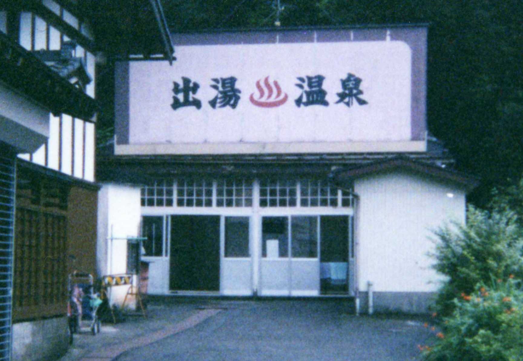出湯の共同無料駐車場に車を止めて、表通りに戻ると、すぐ目の前の奥まった所に出湯温泉の大きな看板が見え場所はすぐにわかります。