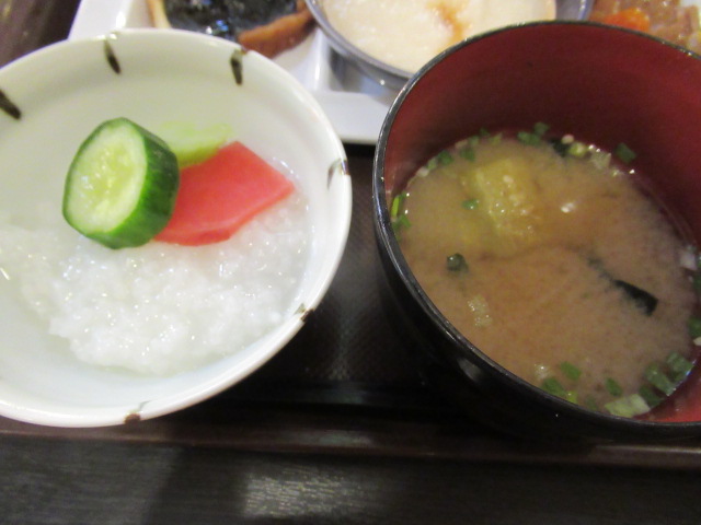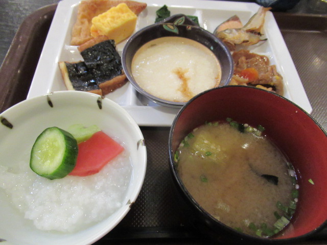 朝のバイキングには、郷土料理の棒葉味噌の焼きたての香りを楽しむ事が出来ました。