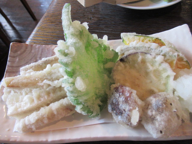 観光地らしき価格でしかたがないかなと思いつつ、野菜天付の石臼挽き手打ち蕎麦を注文しました。