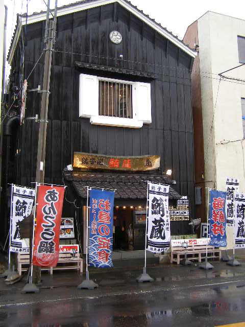 銚子魚市場の漁協直売所前に、黒い外壁の蔵の料理屋があります。