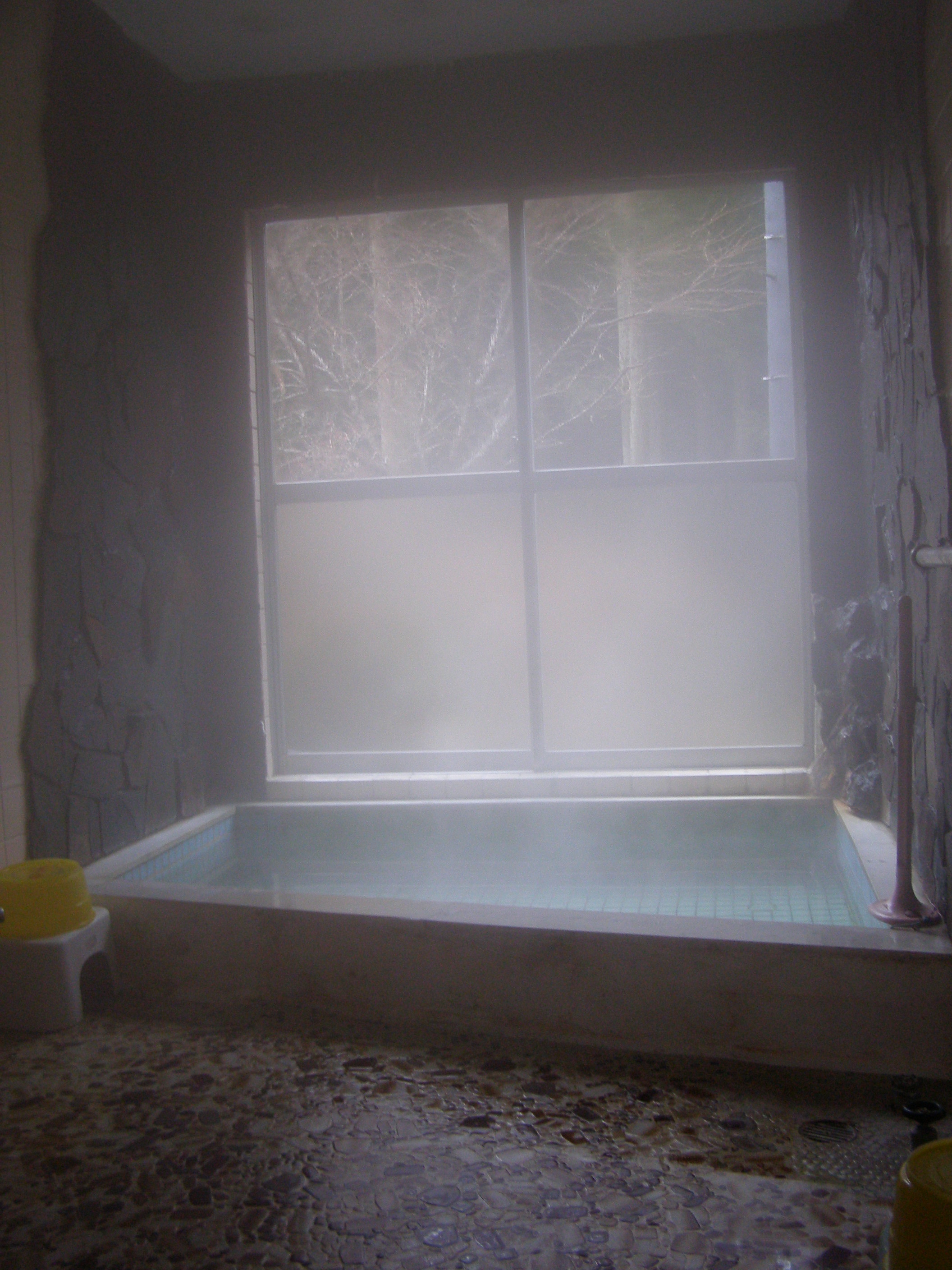 お風呂は、こじんまりした内湯の他に、広い露天風呂もありましたが、ちょっとぬるめの温泉です。