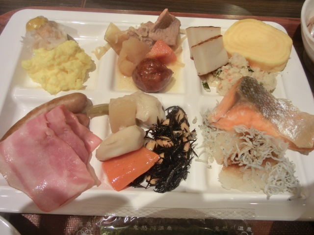 川を挟んだ反対側にも、同じ大江戸温泉物語グループの鬼怒川御苑もあり、食事の隣のテーブルのグループも、御苑と観光ホテルの違いを話し合っていました。