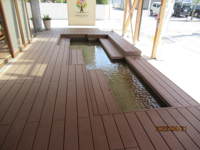 そして、入口には誰でも自由に入れる足湯もあり、その脇にあるカフェテラスと合わせて楽しむ事が出来ます。