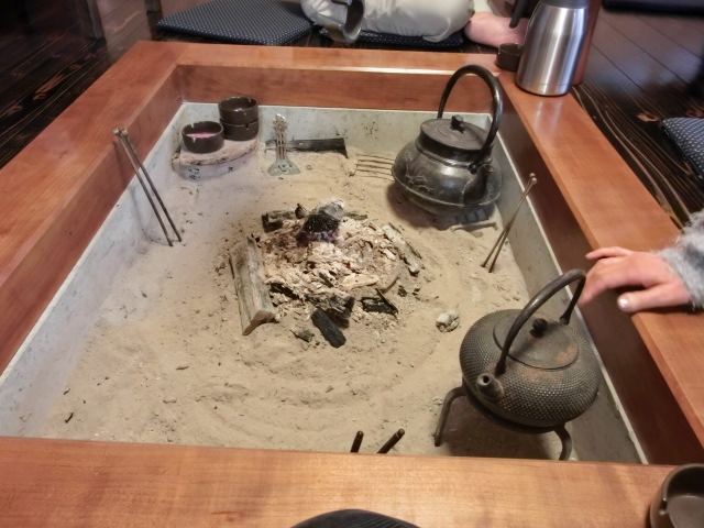 囲炉裏には火が