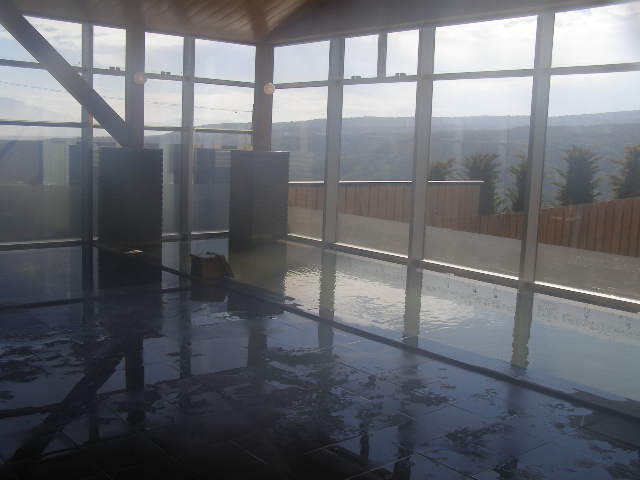 所で、肝心の温泉は、内湯は薄い褐色の源泉掛け流しで、明るく広い室内からは八ヶ岳の眺めが素晴らしいものでした。