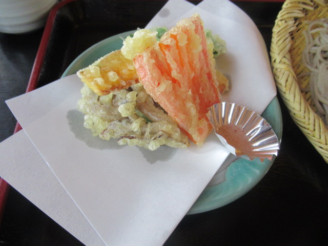 十割そばに、野菜天ぷらはもちろん、蕎麦団子や盛り放題の野菜サラダのバイキングもあり、リーズナブルな価格のセットでした。
