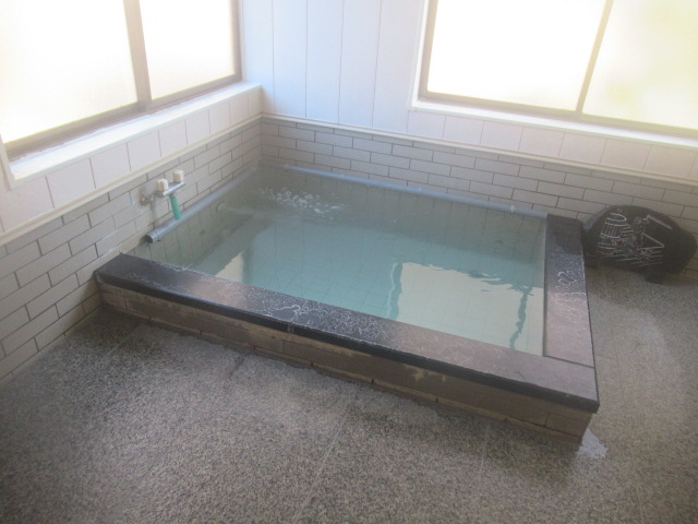 入る時には温泉が床に流れていて加熱掛け流しかと思いきや、しばらくすると水位が下がり、ジェットバスの循環になっていました。