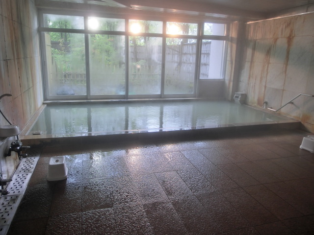温泉は、内湯だけで、日光湯元温泉からの引き湯ですが、源泉掛け流しで、緑がかった白濁の濁り湯です。