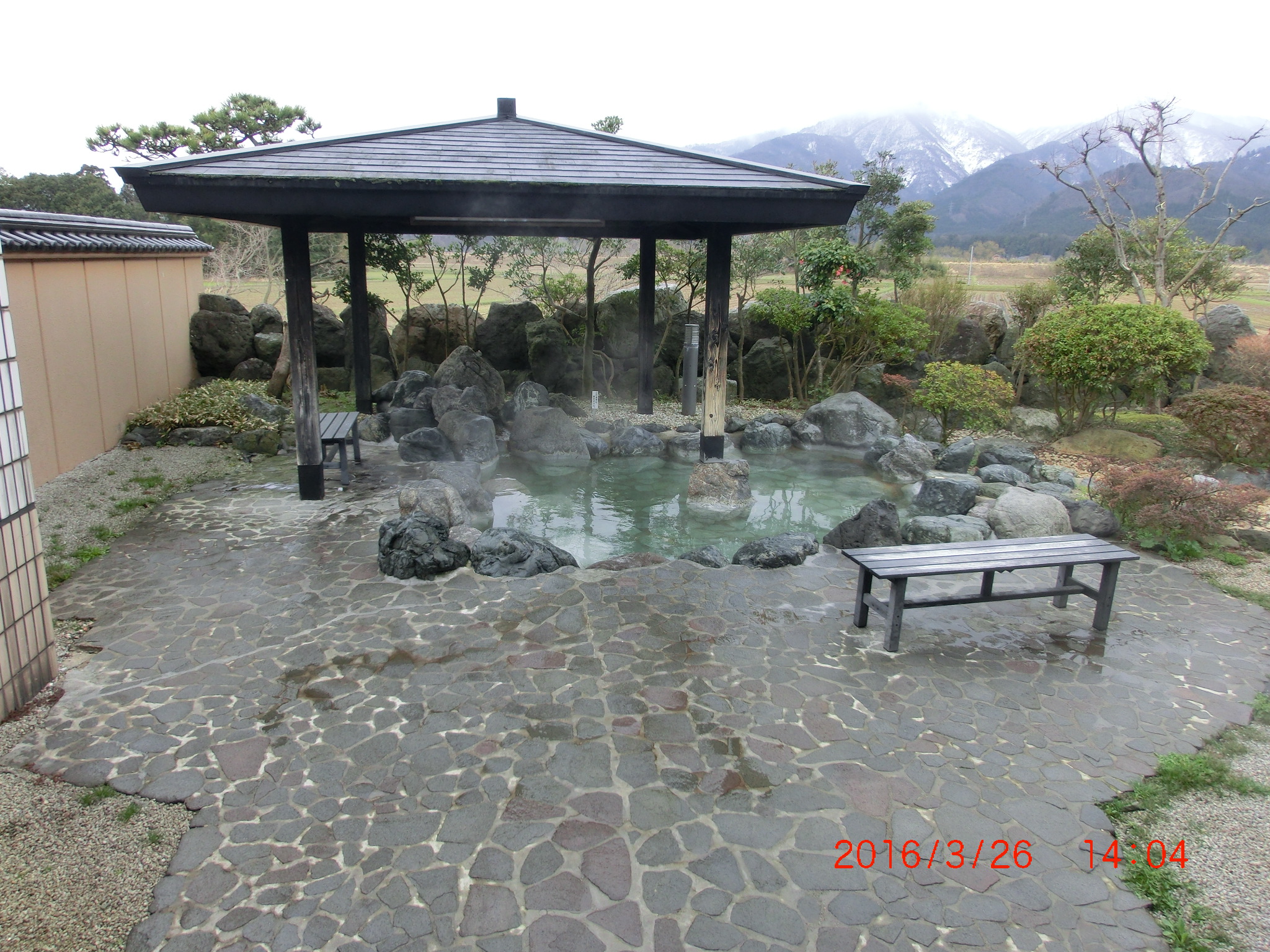 露天風呂の周りには緑に覆われ、パンフレットにも「自然あふれる風景の中で、ぬるめの源泉湯をゆっくり楽しめる。」と書かれてありました。