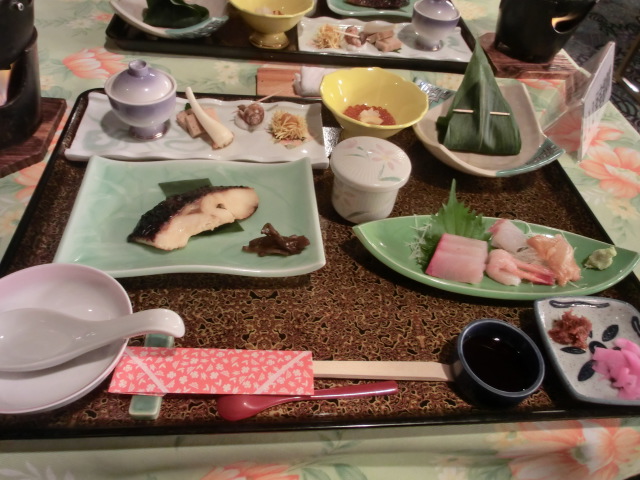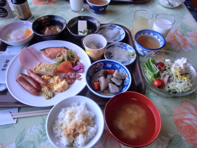 食事は、夕食は海の幸、カニと海鮮鍋で、朝はバイキングでのなかなかの内容の朝食でした。
