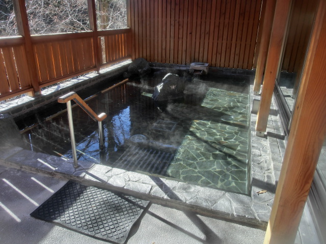浴室は内湯と、それに続く露天風呂があり、露天風呂からは、眼下に白く雪の積もった横瀬川の渓流が見下ろせ、風情を感じます。