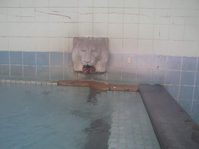 湯口にあるライオンの顔は、戦後の高度成長期の、賑わった時代の象徴です。