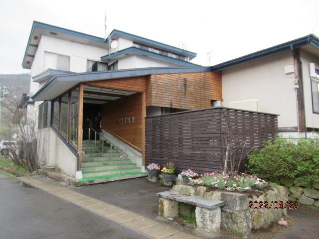 入り口にはきれいな花壇があり、玄関には雪除けの覆いがあり、帰る際に気付いたのですが駐車場の脇には廃車になった雪上車が二台放置されていました。